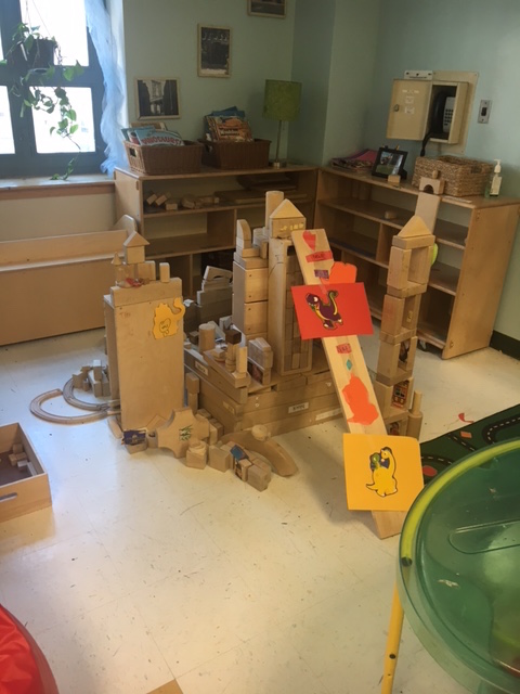 The enthusiasm here built up and even spread to the block center where a group of children created a Dinosaur Game from a block construction.