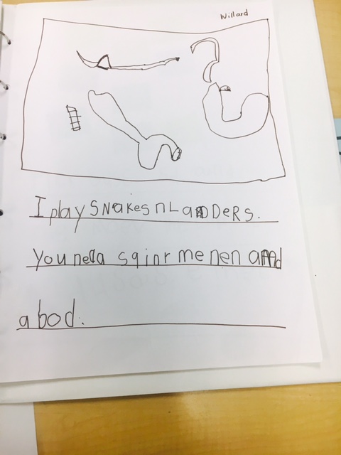 After playing the games, they discussed their discoveries and observations at the class meeting. Charlene introduced a book where children could write about the different games that they played.