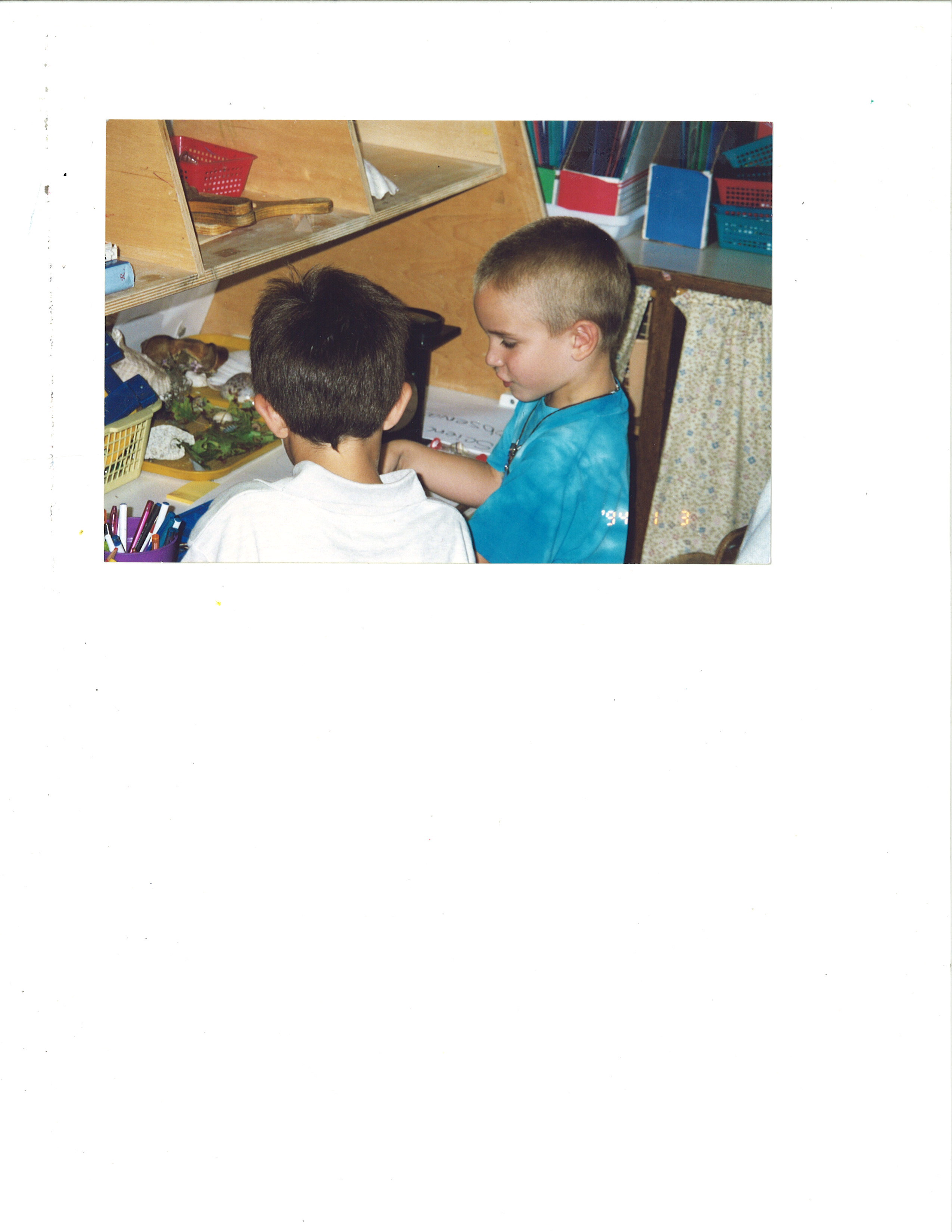 This became one of those serendipitous studies, unexpected but meeting the immediate needs and interests of the children. In the course of this mini study, children had many reasons and opportunities to write, count, use nonfiction books as ‘research’ sources, listen to read aloud texts, sing (…the neck bone’s connected to the shoulder bone…), play in the dramatic play center, and use ‘primary’ materials such as x-rays, bones and doctor’s tools. They even spontaneously created a huge, flat skeleton using the wooden unit blocks.