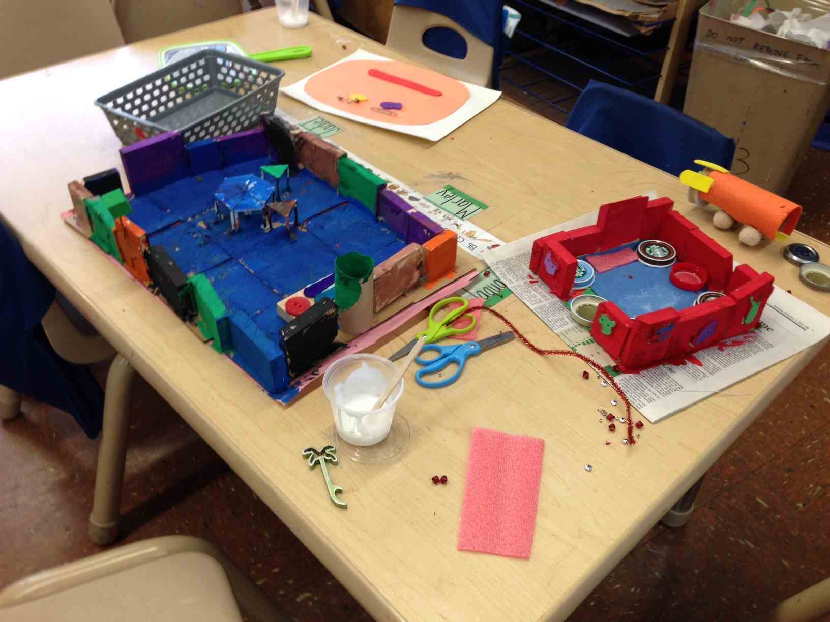 At our morning meeting, we couldn’t seem to move away from the topic of a classroom camping trip. They were just too excited, so I asked the children to talk to each other about what they knew about the forest and about camping trips. Then we had a class share. All different themes and concepts, seemed to present themselves: forest animals, dangerous animals like tigers and elephants, trees, flowers, bears, Goldilocks and the Three Bears, starry skies at night, camping gear like tents, sleeping bags, and flashlights, campfires, roasting marshmallows, etc.