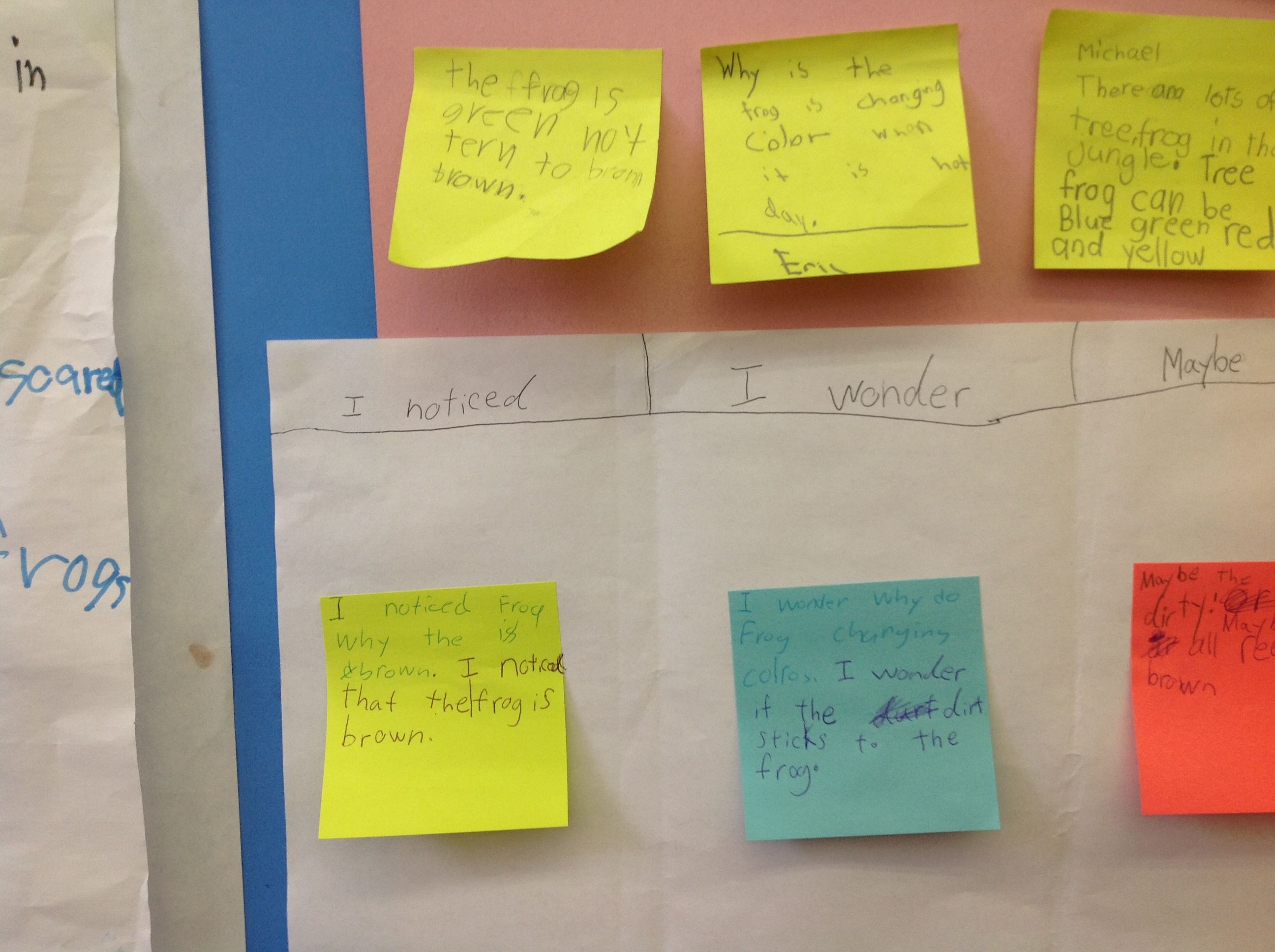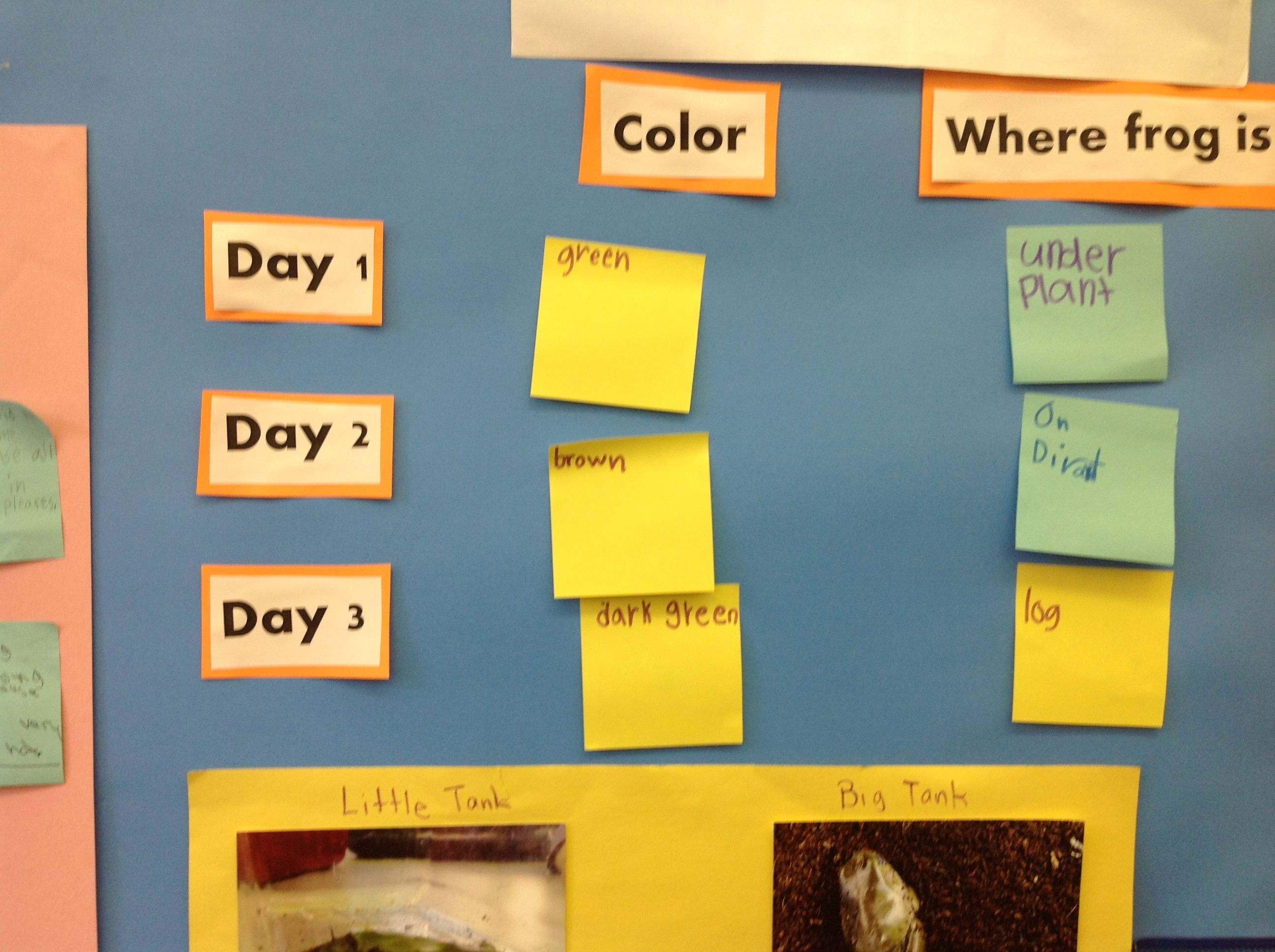 Every once in a while, the teacher sat at the side of the center and jotted down some observations. Later in the day she used these notes to reflect on what was happening and to plan next steps to help scaffold the play.