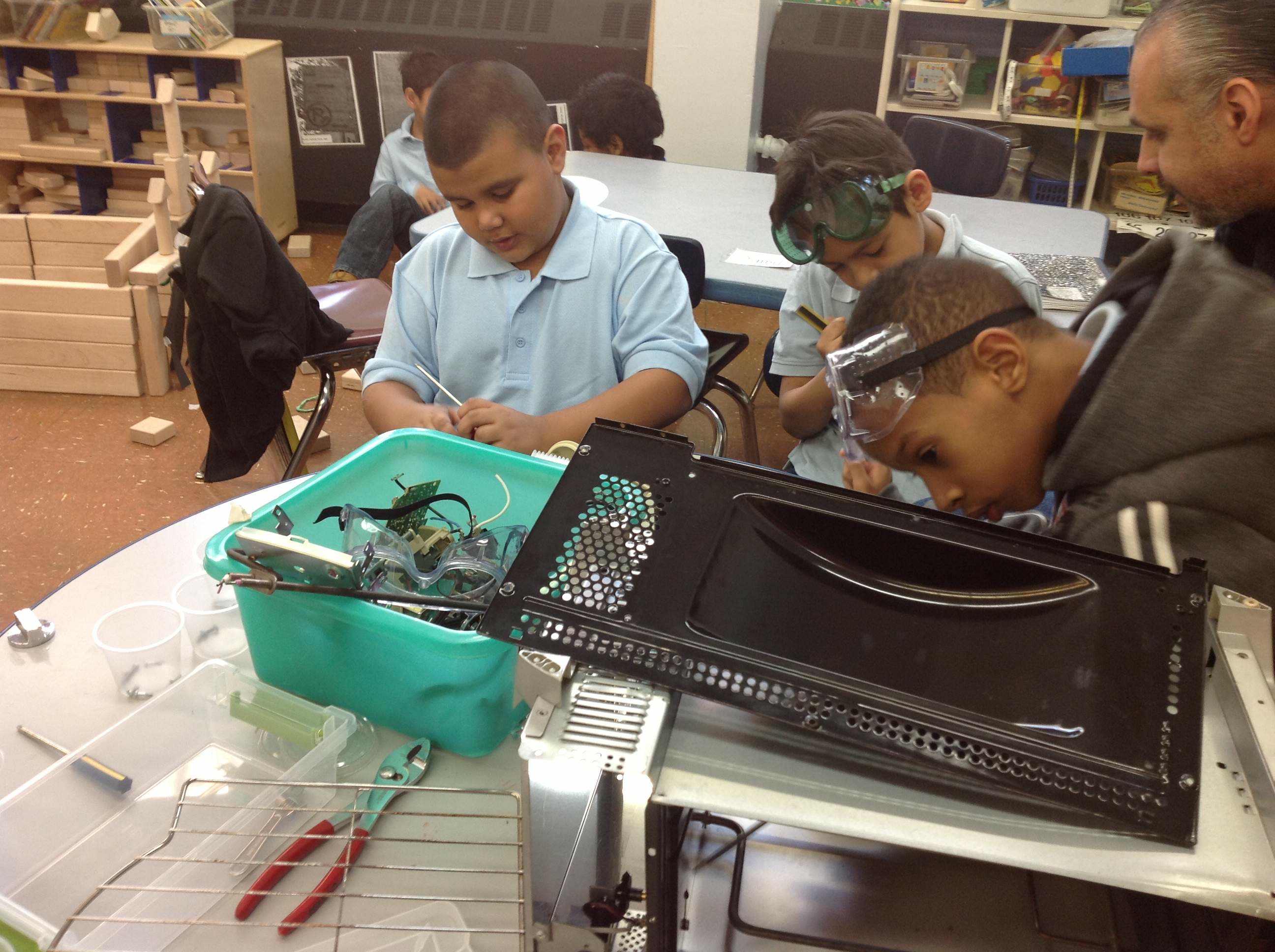 A second grade class that I’ve been working with has been doing a Car Study. After visiting a garage and interviewing a mechanic they opened a “take apart” center where children were using tools to take apart an old machine. They also had a map center filled with all different road maps and materials for children to create their own maps. Recycled materials were stocked in the art center for creating cars.