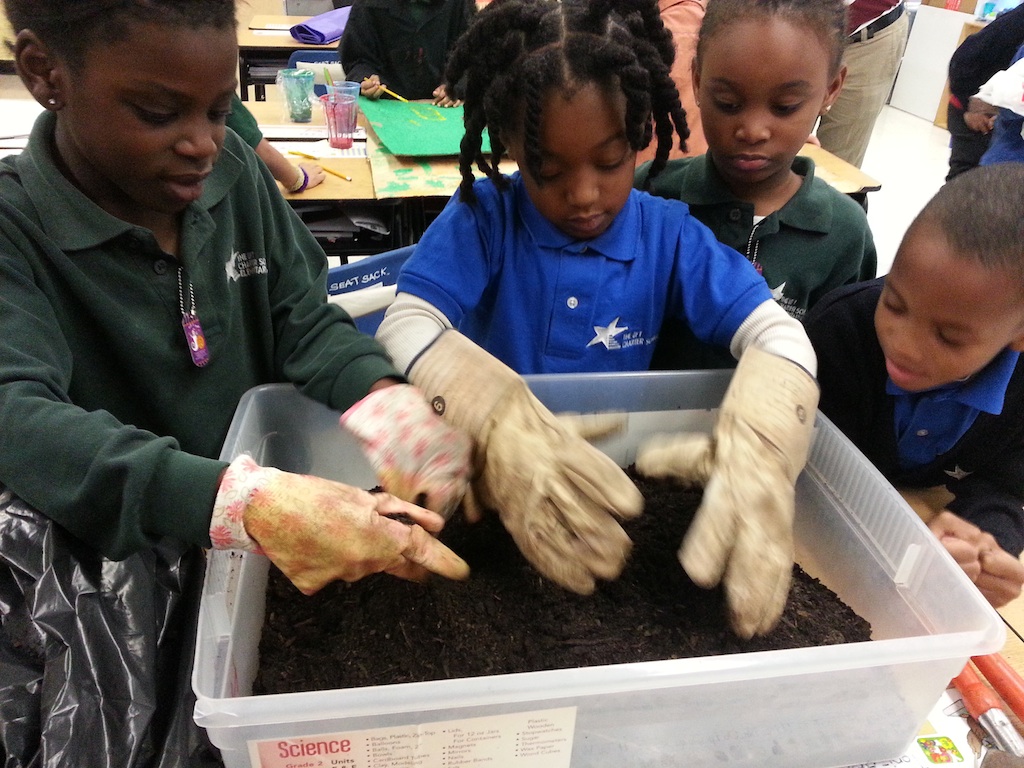 The children planted seeds and labeled their crops.