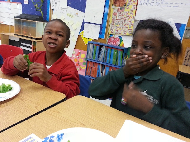 The children were given 2-dollar vouchers that they pooled together and they bought all sorts of new and unknown vegetables…. Brussels sprouts, parsley, kale, spinach, peppers, basil, celery…and brought them back to the classroom to observe and taste.