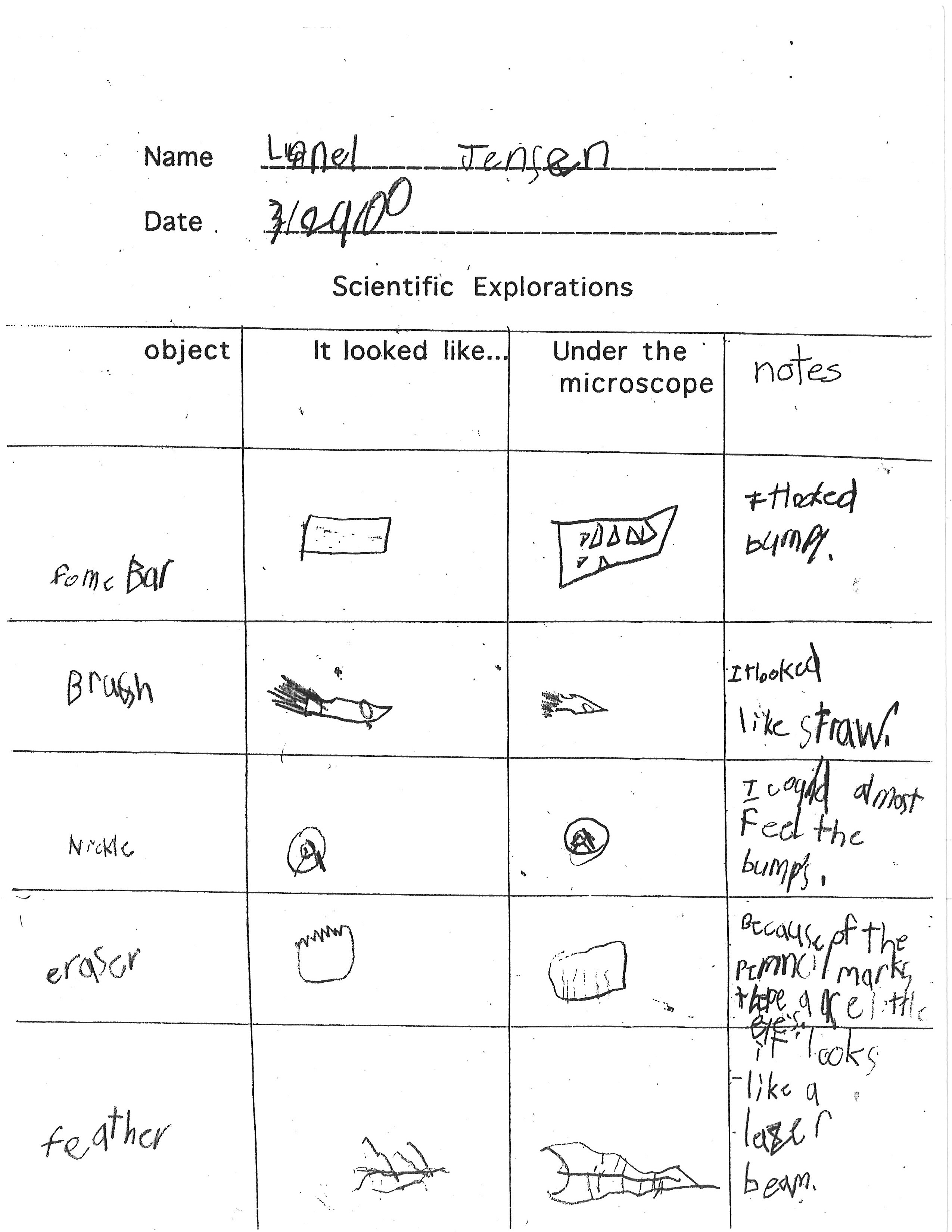 (I.e. unit blocks; water and sand implements such as funnels, tubes and different size cups; science tools such as magnifying glasses, droppers, shells; paint, crayons, markers, a selection of papers, glue, scissors and other possible art materials in the art center; a selection of math manipulatives; and independently using the headphones, tapes and tape recorder in the listening center).